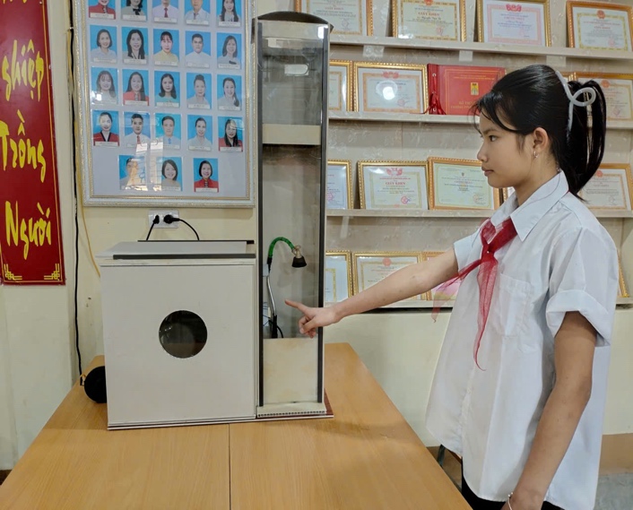 Sản phẩm “Hệ thống làm mát không khí bằng mưa nhân tạo sử dụng năng lượng mặt trời” tác giả Vàng A Mạnh lớp 8A4