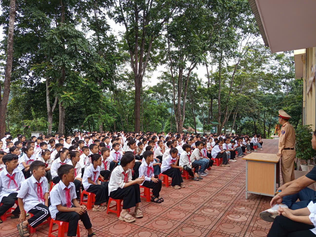 Nhằm góp phần phổ biến pháp luật về giao thông trong các trường học, qua đó nâng cao nhận thức, ý thức chấp hành pháp luật về giao thông, xây dựng nếp sống văn hóa khi tham gia giao thông của học sinh. Sáng ngày 15 tháng 9 năm 2025, Phòng PC 08 Công An Tỉnh Điện Biên , Phòng CSGT phối hợp Trường PTDTBT THCS Na Sang tổ chức tuyên truyền, phổ biến kiến thức pháp luật về an toàn giao thông cho giáo viên và học sinh trong toàn trường.