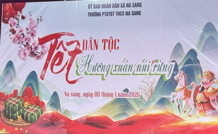 Điện Biên – Khi những cành đào rừng bắt đầu bung nở báo hiệu mùa xuân về, không khí tại trường Phổ thông Dân tộc Bán trú (PTDTBT) THCS Na Sang lại rộn ràng hơn bao giờ hết. Tạm gác lại những giờ học căng thẳng, thầy và trò nhà trường đã cùng nhau hòa mình vào chương trình "Tết Dân Tộc – Mừng Xuân Núi Rừng" tháng 1/2026. Đây là chuỗi hoạt động ý nghĩa dành riêng cho 302 em học sinh bán trú, mang đến một cái Tết sớm trọn vẹn hương sắc và tình thân ngay tại "ngôi nhà thứ hai" của các em.
