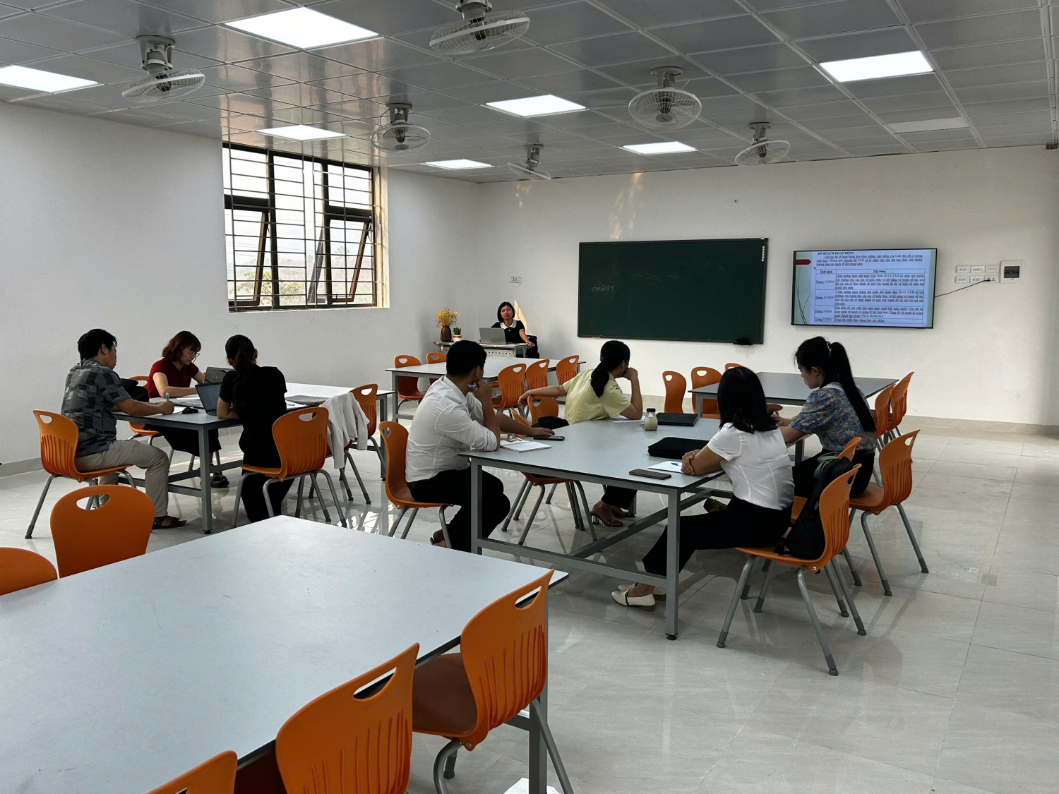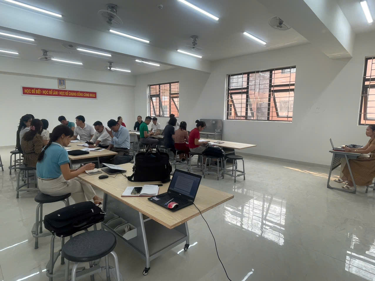 Nội dung sinh hoạt chuyên môn tập trung vào việc triển khai, chia sẻ những nội dung đã tiếp thu từ hội nghị chuyên môn học kỳ II; thảo luận việc thực hiện bộ sách giáo khoa thống nhất từ năm học 2025–2026; trao đổi giải pháp nâng cao chất lượng ôn tập, ôn thi tuyển sinh vào lớp 10; đồng thời bàn bạc về việc triển khai giáo dục trí tuệ nhân tạo cho học sinh phổ thông, nâng cao năng lực thực hiện giáo dục STEM và một số nội dung chuyên môn riêng theo từng môn học. Đây là những nội dung thiết thực, bám sát yêu cầu đổi mới giáo dục hiện nay, góp phần nâng cao năng lực chuyên môn và kỹ năng sư phạm cho giáo viên.